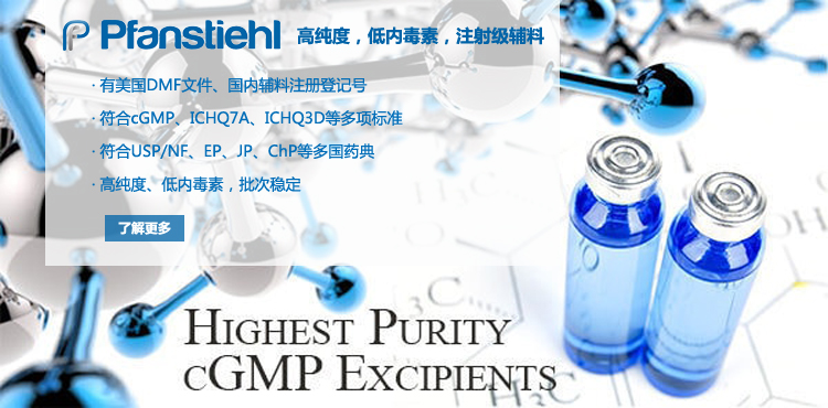 “熱烈祝賀Pfanstiehl的注射級甘氨酸Glycine(G-140)喜獲CDE登記號F20250000403, 這是Pfanstiehl產品獲得的第18個CDE登記號!”甘氨酸在醫藥輔料制劑中應用廣泛,, 可作為緩沖劑,增溶劑,穩定劑等,具有諸多優勢。Pfanstiehl秉承一貫高品質理念,為滿足全球生物制藥行業對于高品質甘氨酸的需求,隆重推出的注射級甘氨酸Glycine (G-140), 具有超高純度,超低內毒素,超低金屬殘留的特點,單獨檢測29種金屬離子,并且新增DNA,RNA,DNA酶,RNA酶和脂肪酶,亞硝酸鹽等多項質量指標的檢測,符合多國藥典規定(USP, EP, BP, JPE, ChP),可用于生物治療性藥物和疫苗的生產。產品信息:· 產品名稱:Glycine, High Purity, Low Endotoxin, Low Metals, USP, EP, BP, JPE, ChP (G-140)· 中文名稱:甘氨酸· 分子式:C2H5NO2· 分子量:75.07 g / mol· CAS號:56-40-6· 產品貨號:G-140產品特點: · 超高純度,超低內毒素,超低微生物含量,超低金屬雜質殘留· 質量指標新增DNA,RNA,DNA酶,RNA酶,脂肪酶和亞硝酸鹽檢測· 符合多國藥典:USP, EP, BP, JPE, ChP· 符合ICH Q3D標準· 符合GMP標準· 已獲DMF和CDE登記號 產品應用:· 緩沖劑· 穩定劑· 增溶劑如果您對Pfanstiehl注射級別Glycine G-140感興趣,歡迎聯系Pfanstiehl 中國區代理商北京西美杰科技有限公司獲得如下詳細的產品概況說明文件和測試樣品。Pfanstiehl Inc.最新產品系列如下,歡迎聯系北京西美杰科技有限公司獲取100g裝免費樣品。北京西美杰科技有限公司為Pfanstiehl中國代理,為客戶提供完善的技術支持與售后服務。歡迎撥打西美杰客服電話400-050-4006或者登陸網站www_xmjsci_com.bairy7.com了解更多信息。 更多>